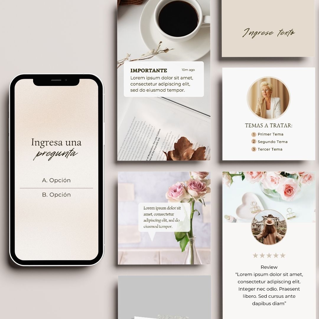 Hemos creado diferentes paquetes para apoyarte en la creación de contenido y de una imagen cohesiva para tus redes sociales. Tenemos plantillas tamaño post regular, stories, eBooks, cover de Facebook, portadas para las destacadas de Instagram y más.
