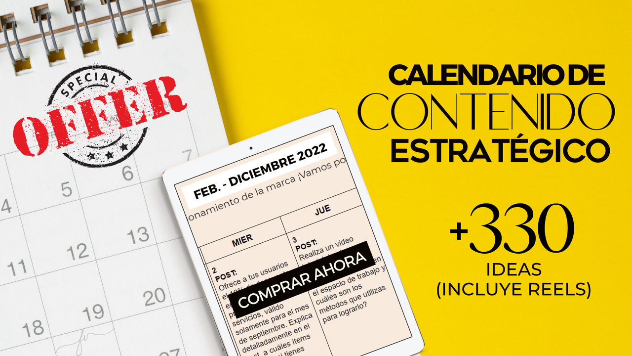 OFERTA $37 Calendario de Contenido Estratégico Feb-Dic 2022 (+330 ideas - Incluye para REELS)